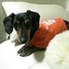 以前購入したTシャツを着て撮ってみました。うちの子はシルバーダップルなんですが、オレンジ色が映えてとっても似合いました!昨日は、ネーム入首輪頼みました。楽しみにしていまぁ〜す♪