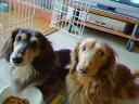 レオン&クレアです。久しぶりのツーショットです。ご飯食べたらお散歩行きたいナ!!パパとママ連れて行ってくれるかな?