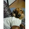 私の座椅子での寝起きをパチリ(O_O)~ 着せ替えが楽しみな私と、またぁ〜?と言わんばかりのセナ…。アハッ(^_^);