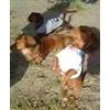 手前は、去年の十二月に産まれたクッキーです。そのうしろがパパのファインくんで、その後がママのチョコです。クッキーはまだ五ヵ月にもなってないのに四・二キロもありました。パパもママもびっくりです。成犬になったら七キロいきそうな勢いです。〓