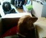 けんしろうは、段ボールの中に入るのが大好きです。しかも、段ボールの中でも美しいお顔は健在です!!そして、後方には・・・やまサンが、おとなしく順番待ち?をしています。