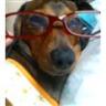 NEWパジャマおろしましたよ。そしてモモちゃん、めがね屋さんZoffの看板真似てみました。