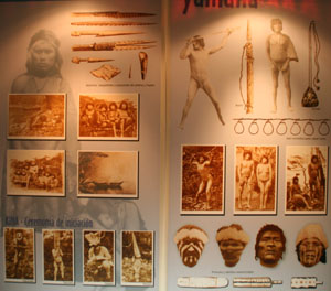 2月7日に見学したプンタアレーナスのサレシアノ博物館はもっと極端で、野蛮なヤマナ族に対して宣教師が如何に文明の恩恵を与えたかが強調されているような感じだった。尤もこの博物館はイタリアの修道会が運営しているのでその展示ポリシーは当然かも知れない。