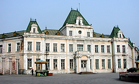 俄羅斯風情街は大連の勝利橋を渡ったところにある。俄羅斯は「おろしあ」のことである。東清鉄道を直接埠頭まで持って行くために小高くなっている岬状のところを掘り割りで通し、橋の所にダリーニ駅を作った。東清鉄道の技師長で、ダリーニ市長でもあったサハロフは、ドイツ人技師をともなって、パリに似た市街地と商港を設計した。そのため鉄道の掘り割りを境として、海側に行政市街、反対側をヨーロッパ市街として都市計画を行った。少し離れたところ(現在の大連駅の西側)に中国市街も計画された。中国人労働者も必要だったからである。