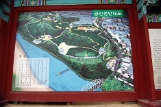 公山城は公州北部、北に錦江(금강:クムガン)を擁する包国式の海抜110mの低い山城である。他の百済の城同様、高句麗に対する防御に神経を使っている。公州と漢城の間は高い山地はない。間にある車嶺山地があるが、険しいことはない。公州は南部から北へ向かうときの交通の要地でもある。