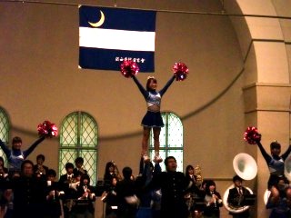 応援団総部(指導部、吹奏楽部、チアリーダー部)による歓迎パフォーマンスで歓迎を受ける。