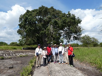 サファリカーに揺られて3時間で、バガモヨのカオレ遺跡に到着し、カイドの案内で、13世紀のイスラム教の遺跡やバオバウの木(アフリカとマダガスカルとオーストラリア生息の木で、年輪がありません(樹齢500年))を見て歩きました。