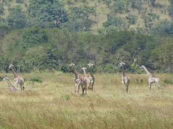 遅めの昼食を摂って、雨の中ではありましたが、期待のサファリドライブに出かけて、最初に見たものはキリンで、自然の動物たちに歓声(動物たちをびっくりさせないため小さい声で)が上がりました。 その動物たちを順番に載せていきますと。 |