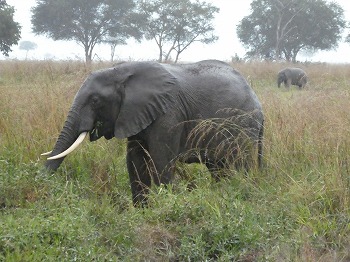 ミクミ国立公園を目指して一路中央アフリカのザンビアに向かう国際輸送路になっている道路を時速50キロメートルでひたすら走りました。タンザニアからザンビアまで約2000キロメートルの国際輸送路なのでトラックの交通量は多く、日本では考えられない追い越しを掛ける様子も見られました。所々に部落があり、店も並んでいました。途中でカッシュナッツとマンゴウの木を休憩かたがた立ち寄りました。また、村々ではイスラム教のラマダン明けで、人は多く出てきていました。