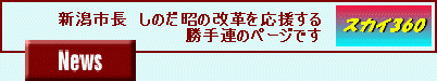 篠田市長は開会中の議会で「合併―政令市づくりは手段。達成すべき大きな目標は“新潟に生まれ、暮らし、生きていてよかった”と市民に思っていただくこと」と繰り返し述べ、「合併―政令市を契機として行政のスリム化と市役所職員の意識改革に不退転の決意で取り組む」と次の課題を明らかにしています。